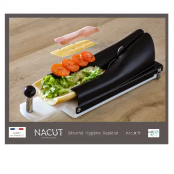 NACUT, fabriqué en France, est le 1er outil de coupe et de préparation de sandwichs, qui allie sécurité, rapidité, hygiène et productivité.